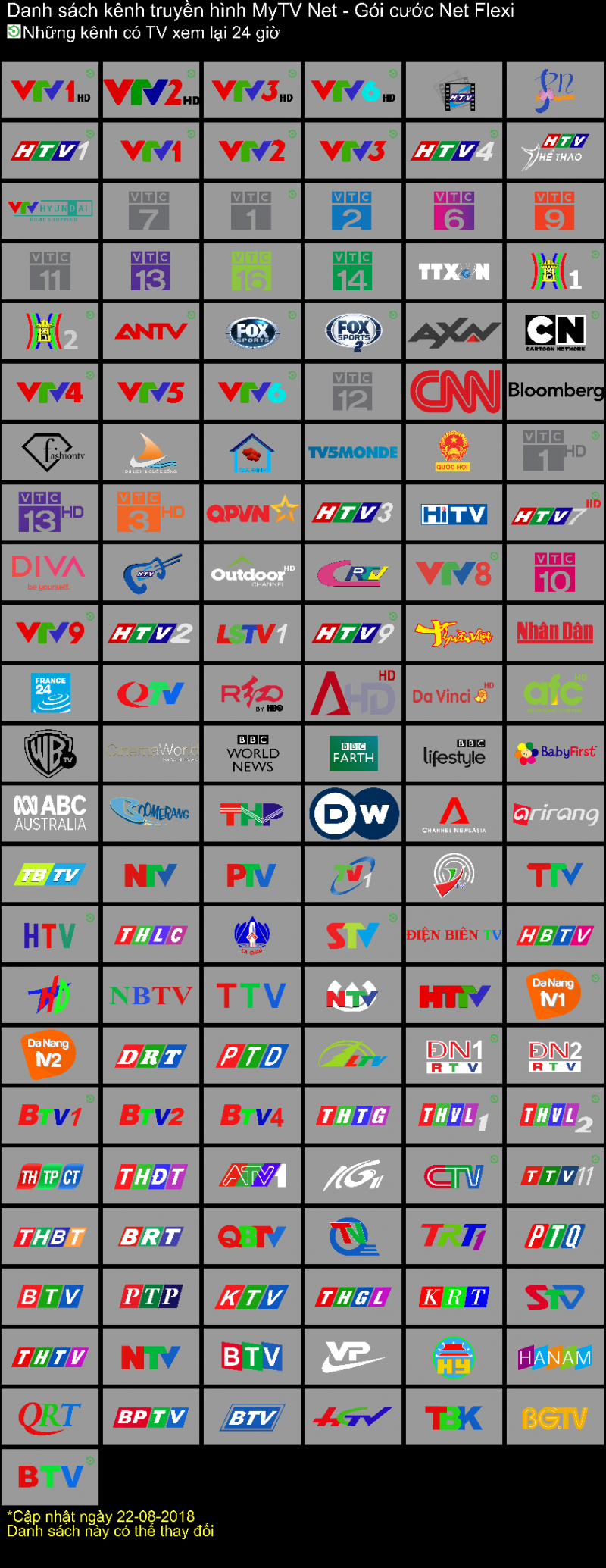 Danh Sách Kênh Truyền Hình 145 Kênh Đã Được Tích Hợp Trên Mytvnet Net 1:
